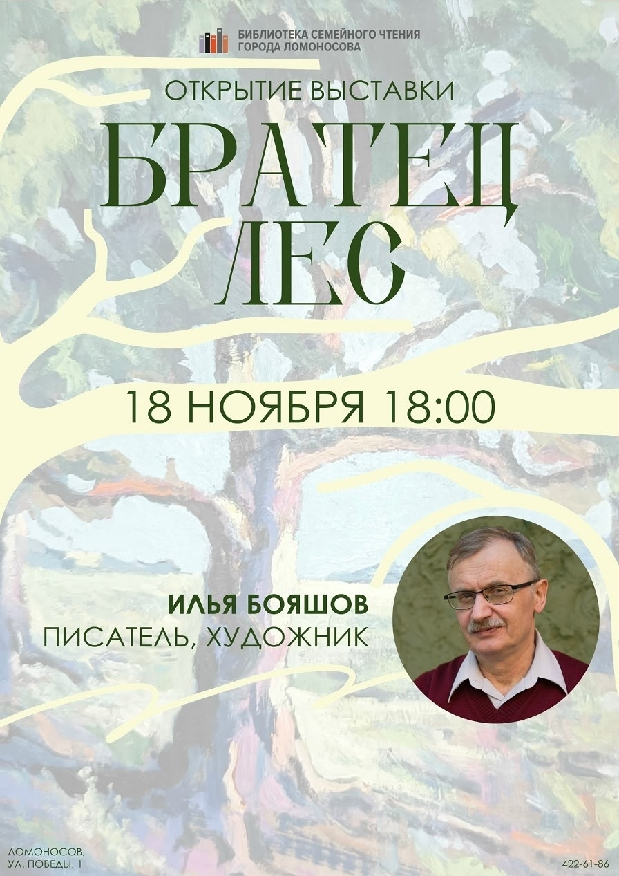 О выставке картин Ильи Бояшова «Братец лес». Библиотека семейного чтения г. Ломоносов, 18.11.2025 г.