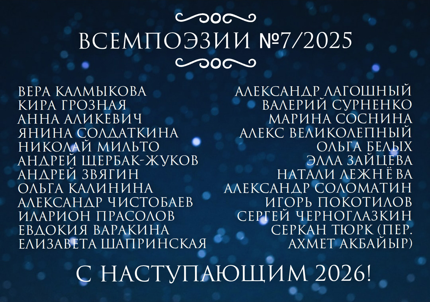 Новогодний выпуск партнерского журнала «ВСЕМПОЭЗИИ» №7/2025 увидел свет под бой курантов — в него вошли произведения, написанные авторами в ушедшем 2025 году.